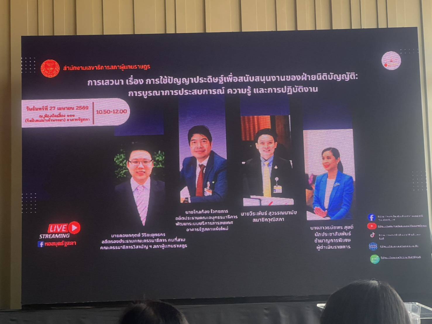 - Mr. Klaikong Vaidhyakarn (Former Chairperson of the Subcommittee on Information Service System Development for the New Parliament Building and Operational Development of the House of Representatives)