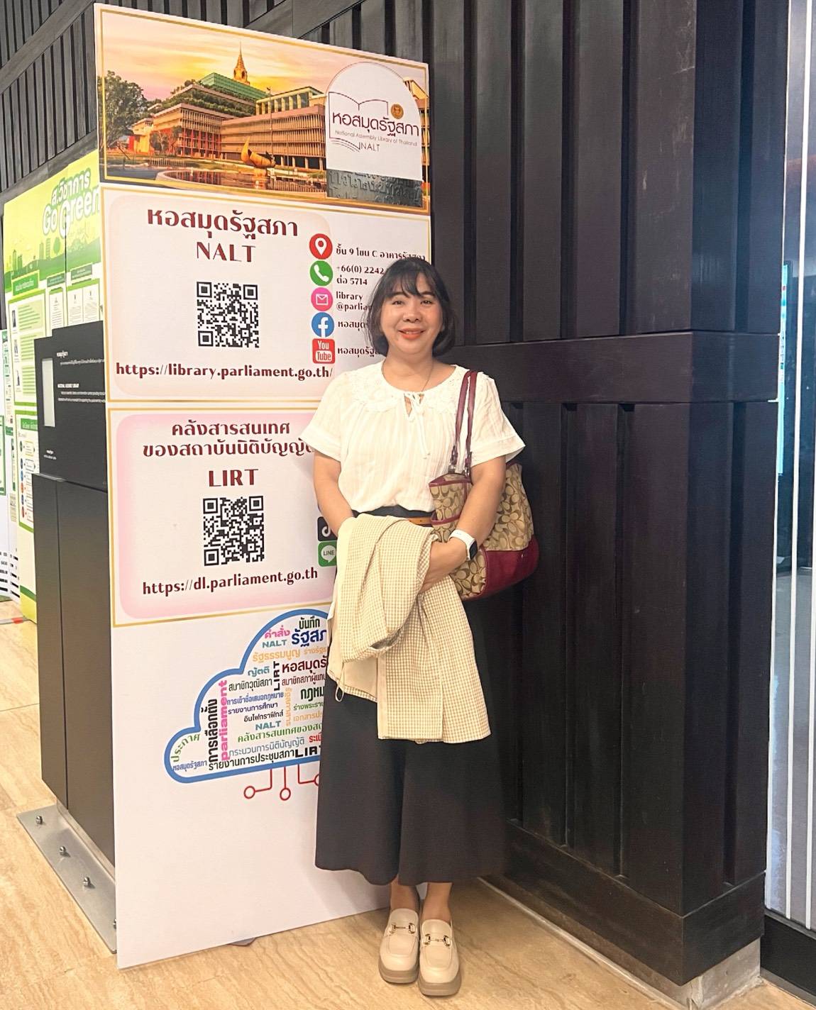 2025年4月27日(星期一)08:30–16:30,格乐大学图书馆馆长Kobkullaya Ngamcharoenmongkhon博士及信息开发与服务部馆员Kwanjira Napanpong女士,参加了题为 “NALT Forum : Knowledge for Legislative & Innovation” 的学术研讨会。本次研讨会由众议院秘书处学术事务办公室下属的图书馆工作组、信息资源发展组以及研究与发展组联合主办,并与Thailand Science Research and Innovation (TSRI)合作举办。