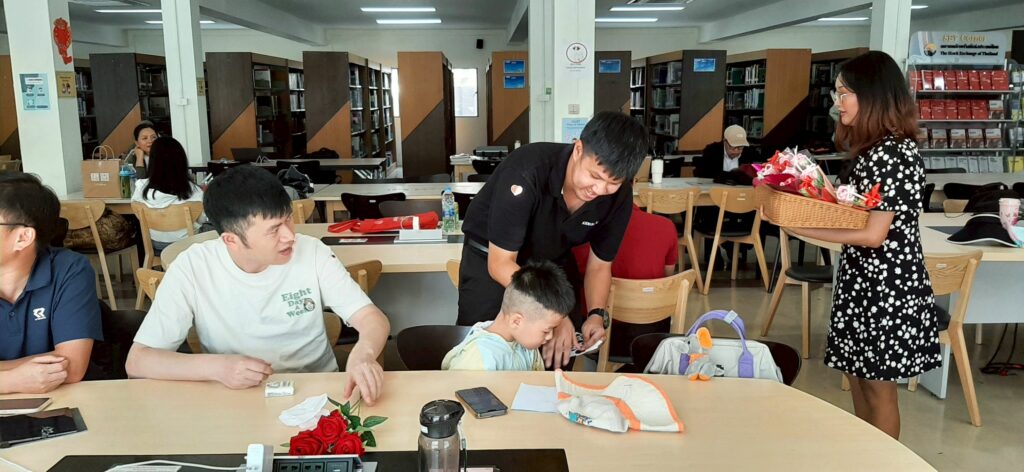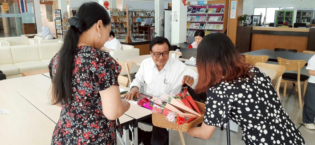 ทางหอสมุดได้มอบ ดอกกุหลาบแทนคำขอบคุณ